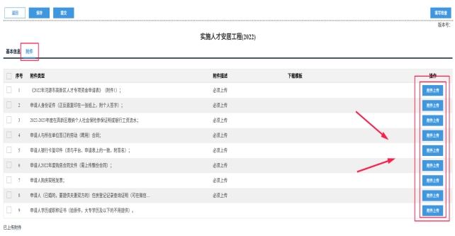 ②把第二步扫描好的材料逐一上传,最后点击“保存”后“提交”。
