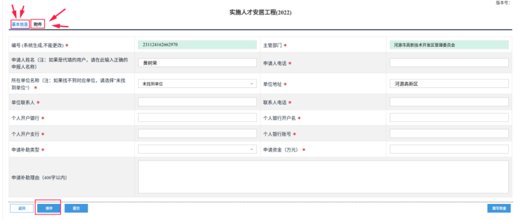 ①填写基本信息