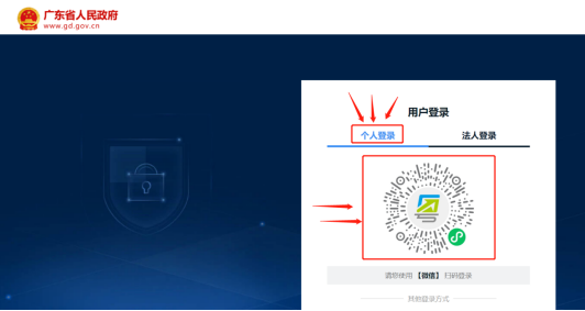3.跳转页面,要选择“个人登录”,再通过微信/“粤省事”小程序扫描登录(提示:要已实名认证的微信)。