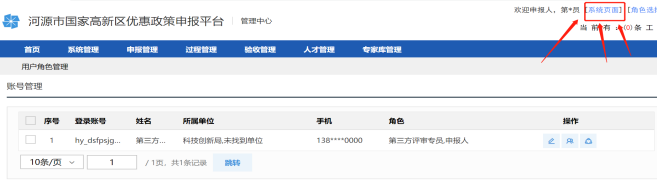 1.完成第三步后,再点击右上角的【系统页面】进入申报平台首页