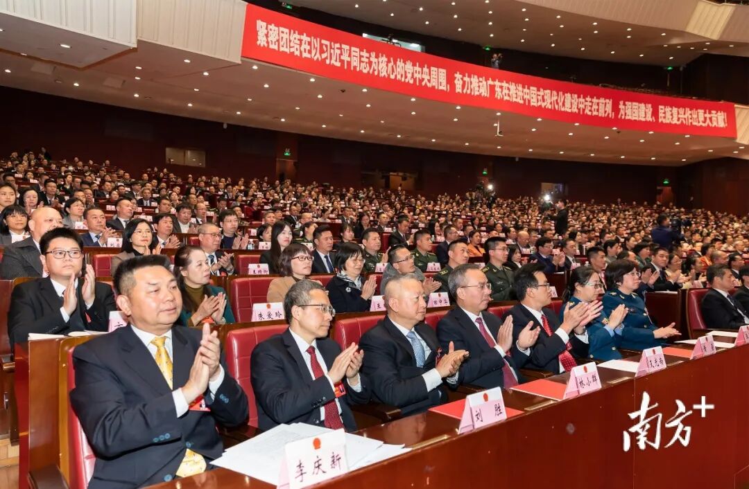 省委书记黄坤明,省委副书记、省长王伟中,省政协主席林克庆,省委、省政府、省政协领导同志宋福龙、陈建文、张虎、王曦、郭永航、袁古洁、王瑞军、张弓,张少康、张新、林涛、刘红兵、刘国周、陈良贤,王学成、张嘉极、郑轲,驻粤部队领导同志李军、于福文、程铁军、刘大志,省法院、省检察院领导同志张海波、冯键,我省选出的十四届全国人大代表吕世明,广州、深圳市负责同志孙志洋、覃伟中、王衍诗、骆文智、戴运龙,以及大会主席团其他成员出席大会并在主席台就座。