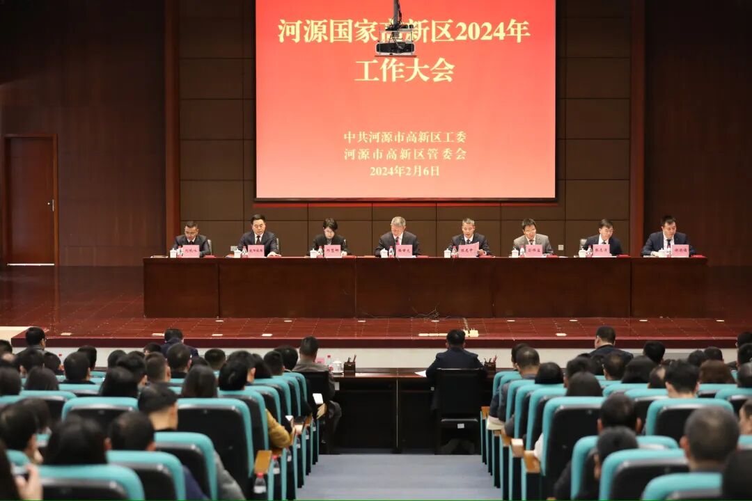 一张蓝图绘到底,“跳起摸高”拼新功。会议部署,2024年,河源国家高新区将以习近平新时代中国特色社会主义思想为指导,全面贯彻落实党的二十大、二十届二中全会和中央经济工作会议精神,贯彻落实省委十三届四次全会暨省委经济工作会议精神、省两会精神,以及市委八届七次全会暨市委经济工作会议、市两会精神,紧扣高质量发展首要任务,贯彻落实省委“1310”具体部署、“百千万工程”、绿美广东生态建设以及市委“138”具体安排和市委“133工作法”,坚持以实体经济为本、制造业当家,持续深入实施“四个年”活动,纵深推进“八大攻坚战”,一以贯之推动园区又快又稳高质量发展,加快打造千亿级国家高新区,坚决当好全市制造业当家、打造独具特色优势的现代化产业体系河源样板的标兵,努力在加快河源实现绿色崛起中勇当全市先锋、做好全市示范、走在全市前列。