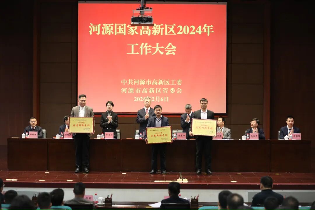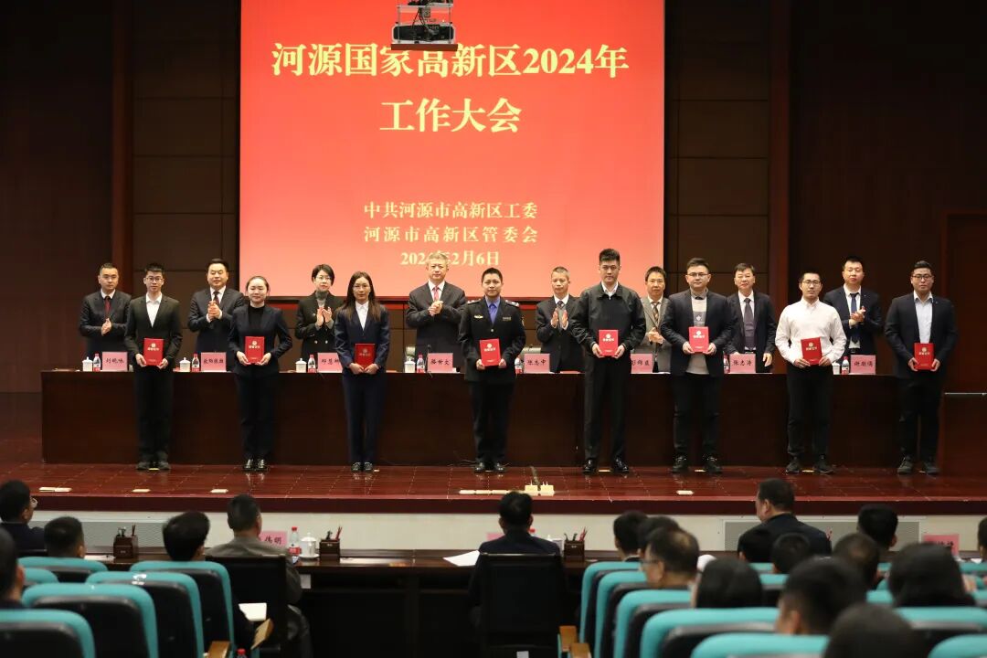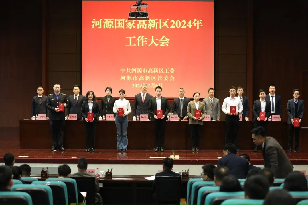 2月6日,河源国家高新区召开2024年工作大会,全面总结去年工作,全面部署今年任务,进一步统一思想、团结奋斗、努力拼搏,全力以赴推动园区又快又稳高质量发展,争做打造独具特色优势的现代化产业体系河源样板标兵,朝着千亿级国家高新区目标奋勇前进。