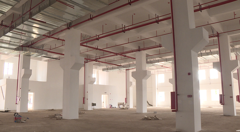 目前,项目的两栋现代化六层厂房拔地而起,外墙装饰、电梯、门窗等内外装饰工作也顺利完成。项目现场,工人们正紧张而有序地进行室内消防管网安装。