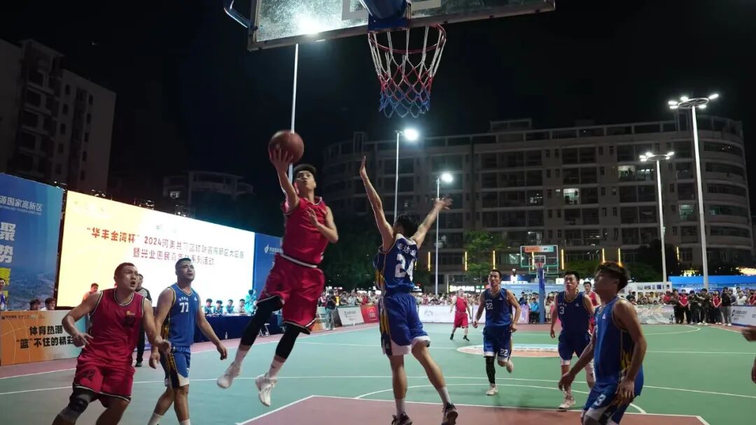 5月14日晚上7点,河源国家高新区迎来了一场篮球盛宴——金三维智造队和丰达音响队打响了揭幕战。“华丰金湾杯”2024河美共赢篮球联赛高新区大区赛暨兴业惠民嘉年华系列活动正式启动。