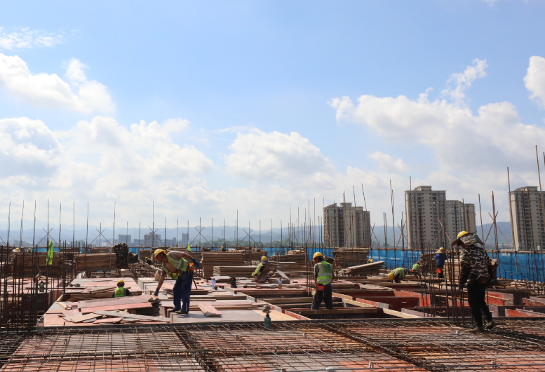 架设钢梁,如同举着钢筋在其间“穿针引线”。施工现场,来自江西吉安的钢筋工林文良戴好安全帽和胶皮手套,和工友一起有序进行施工作业,确保项目进度。“前段时间下雨,耽误了工期进度,虽然现在要加班,但一个月计件后差不多有近万元的工资收入。”林文良满意地说。