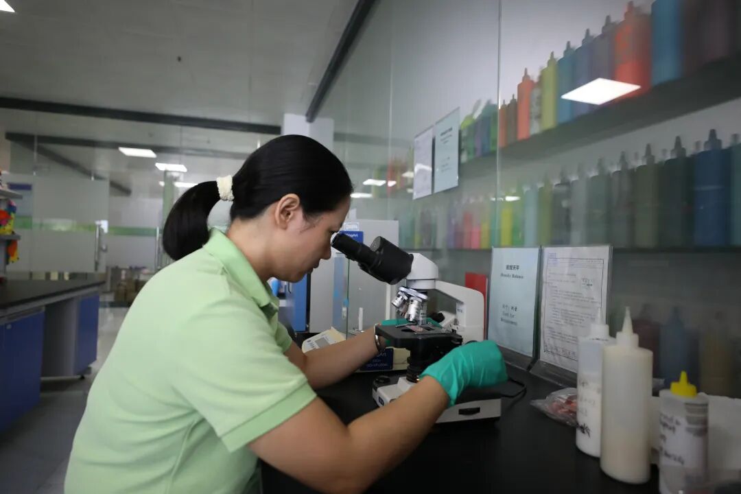 在云彩实业研发室,技术人员正通过显微镜观察客户样品在显微镜下的形状,由哪几种颗粒组成。“每一个客户样品送过来,我们针对颜色、颗粒形状等进行深度分析,力争为客户提供满意的产品。”技术人员余幸兰说,公司非常注重产品安全无毒环保,所有的用料都选用食品级、化妆品级的材料,在产品生产、灌装、包装等生产工艺过程中也特别控制微生物的药检,在产品的安全性方面得到了国际认可。