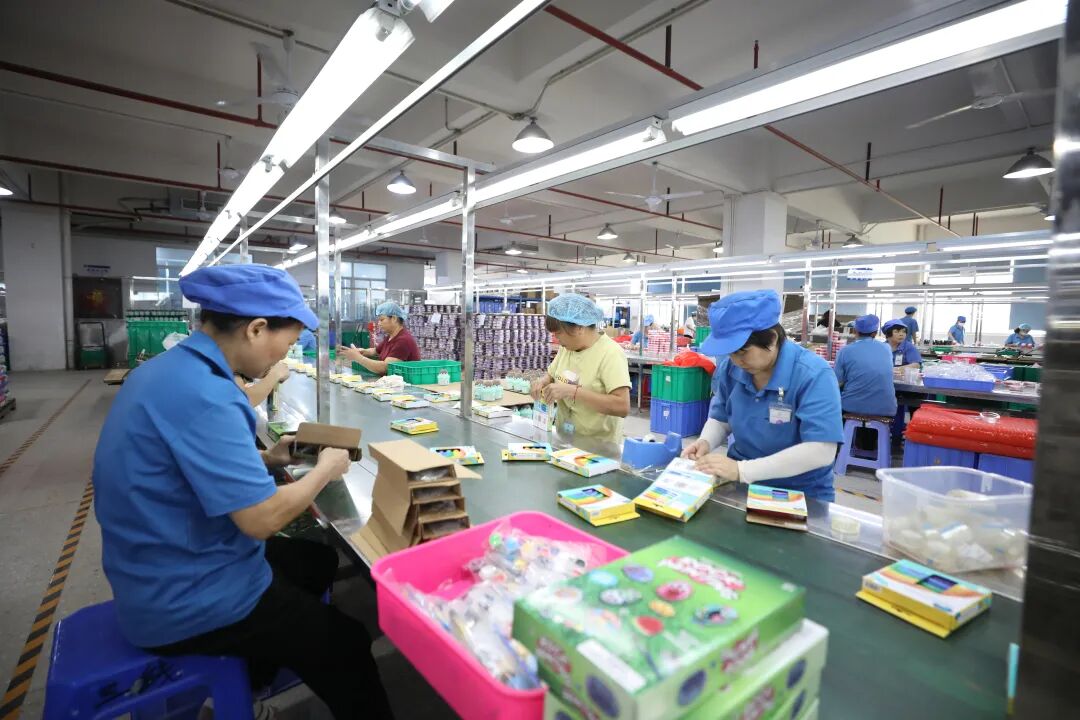 在云彩实业的组装车间,工人们正在对水晶泥成品进行打包、装箱。记者现场看到,与传统的水晶泥盒装不同的是,装有水晶泥的瓶子上还有一个卡通玩具手办。“这款水晶泥产品不仅是孩子们之间的玩具,还成为了他们社交的新工具,相互交换收集卡通形象类型及数量。”熊文说,客户购买了相关卡通形象的专利授权,目前已经打造了100多款不同的手办形象。
