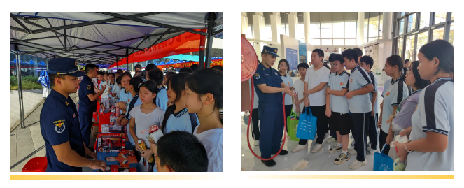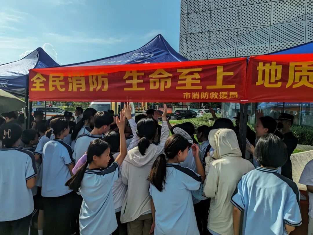 河源市消防救援支队以设立摊位的方式,开展一系列互动、参与、分享、体验的科普展览与活动,让消防安全意识深入人心。来自周边中小学校的师生代表、企业员工代表,穿梭在科普集市上,学习相关科普知识。