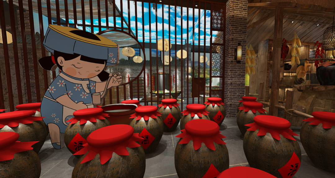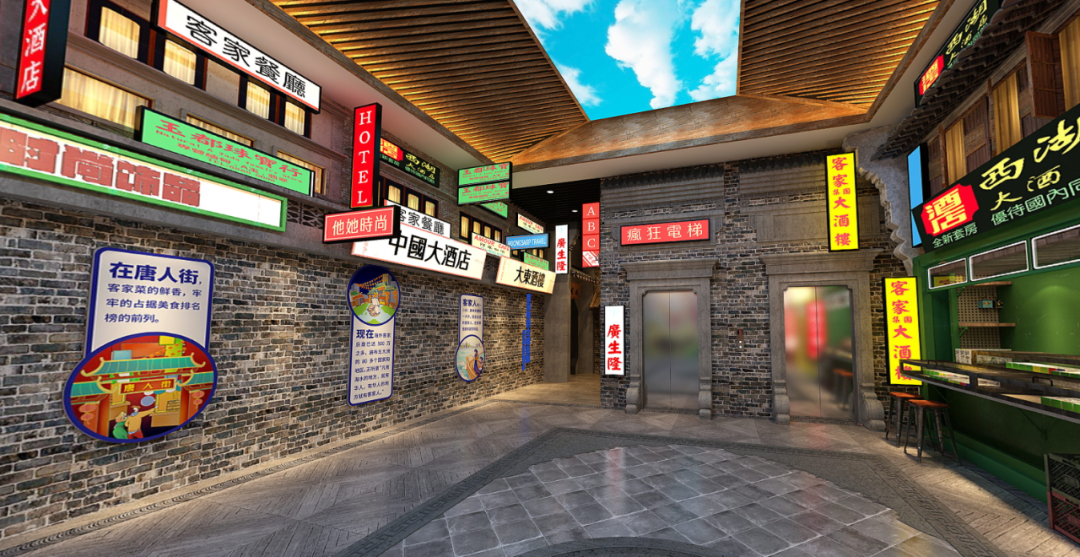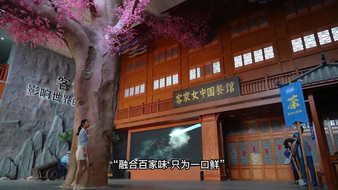客家美食乐园以客家特色美食为载体,通过声光电拟真场景,沉浸式还原客家人的祖先中原汉人南迁时所形成的特色客家美食和客家小吃。
