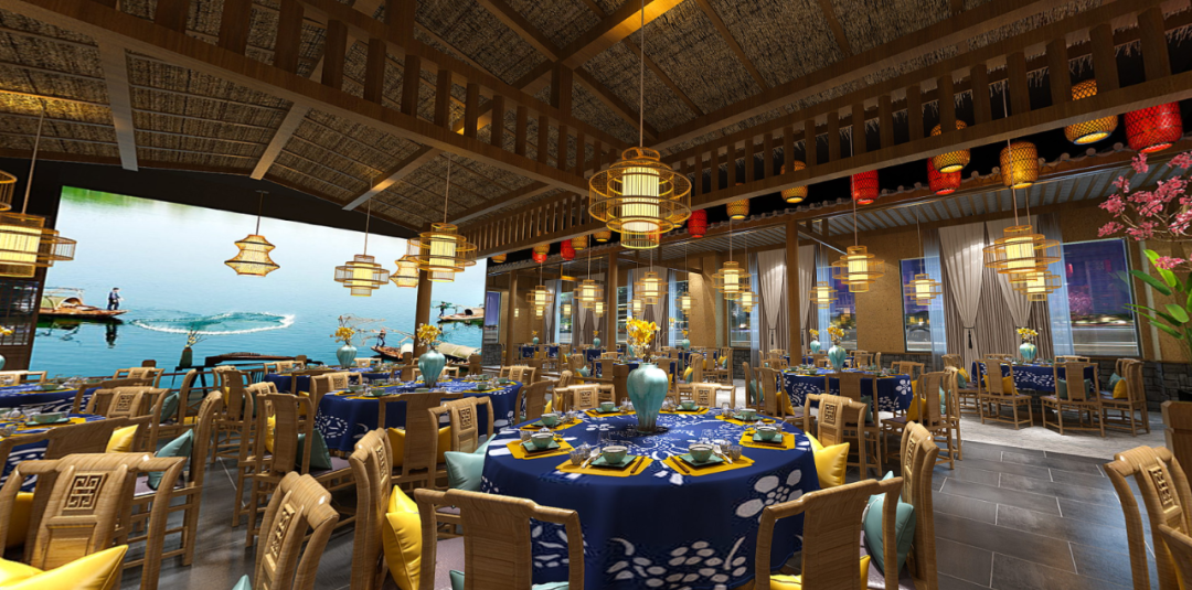 拟规划预约制特色餐厅,利用光影数字营造全方位,多层次且互相衔接的幕影投射影像,将各种动植物,自然景象,超现实虚拟场景等素材进行客家文化元素深度包装,给餐客带来一场声光电沉浸式的用餐体验。
