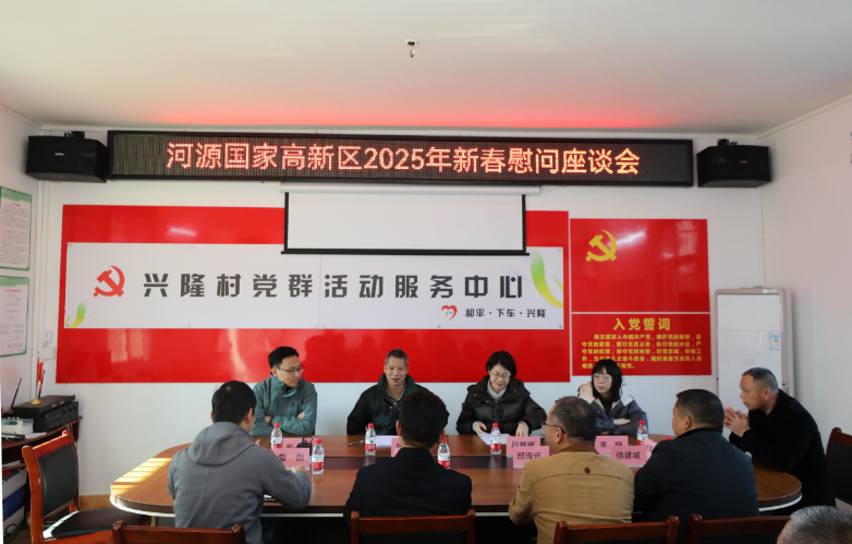 1月18日,河源国家高新区党工委副书记、管委会主任陈志中带队到和平县下车镇兴隆村开展春节走访慰问活动,了解乡村振兴驻镇帮镇扶村工作情况,看望驻镇帮镇扶村工作队和村干部,入户走访慰问老党员和困难群众,实地调研重点帮扶项目。河源国家高新区党工委副书记邱慧娜,党政办公室、高质量发展协调服务中心等部门相关负责人参加活动。