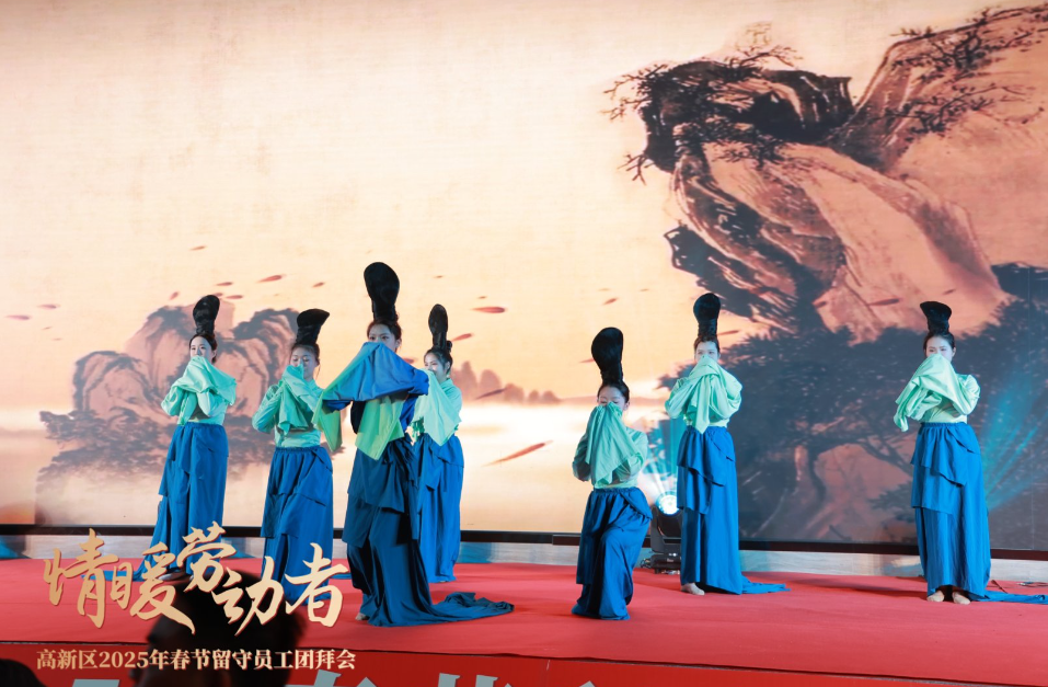 随后,伴随着欢快的歌声,团拜会文艺演出拉开序幕。女声独唱《幸福中国一起走》、古典舞蹈《只此青绿》《万疆》、乐队演唱等,整场演出通过新颖别致、年味满满的节目内容,展现了高新区企业和员工们浓厚的家国情怀、昂扬的精神风貌和坚定的文化自信,奏响了新时代新征程的迎春曲。