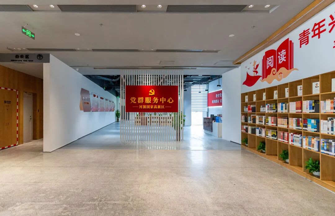 党群服务中心设有宣誓区、展示区、学习区、培训区、活动区、咨询区等。