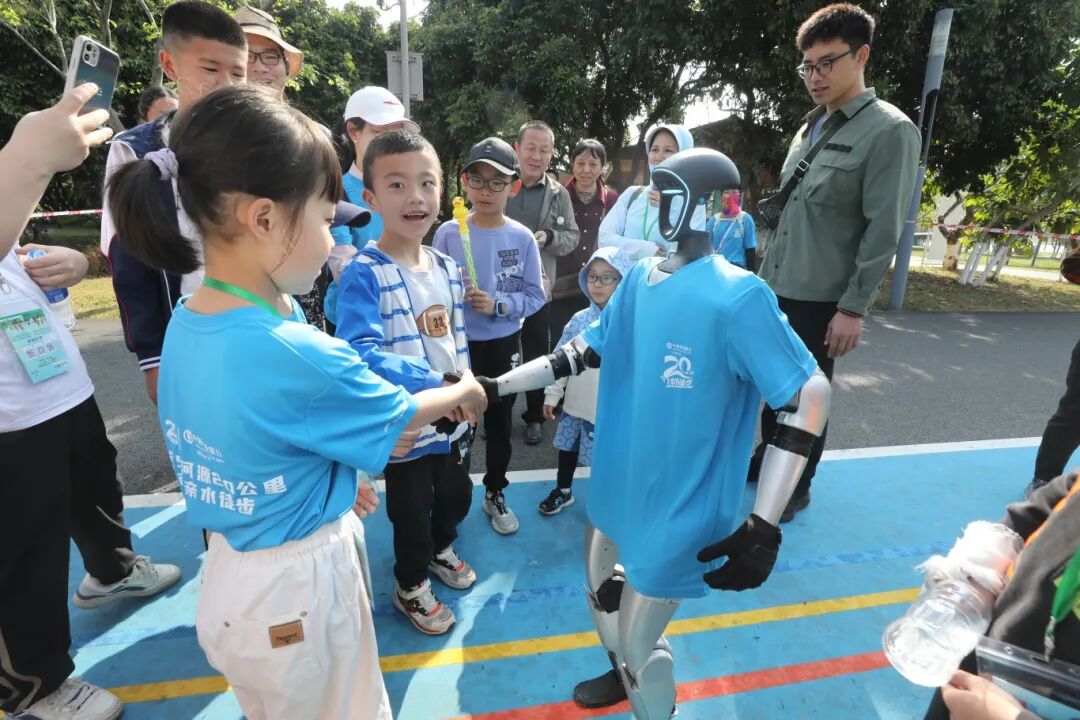 此前,在“绿美河源 阔步向前”2025河源20公里城市亲水徒步活动上,勇艺达行走机器人随徒步爱好者共同行走,其间还与大家进行互动。