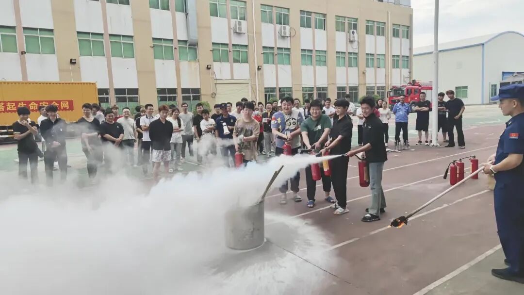 有奖问答环节,参训人员积极抢答问题,在互动中巩固知识。消防器材培训现场,消防员围绕灭火器、消火栓、防烟面罩等设备,讲解使用原理与操作步骤。员工在“提、拔、握、压”口诀指导下进行实操练习,消防员全程指导,确保操作规范。