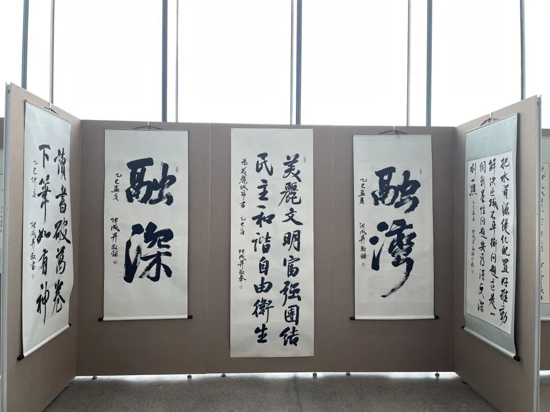 活动现场,一幅幅主题鲜明、风格各异的书法作品悬挂在图书馆展厅内,或笔力遒劲、气势磅礴,或飘逸灵动、韵味十足。前来参观的干部职工们纷纷驻足欣赏,低声交流作品的精妙之处,在感受书法艺术魅力的同时,也接受着红色文化和廉政教育的熏陶。