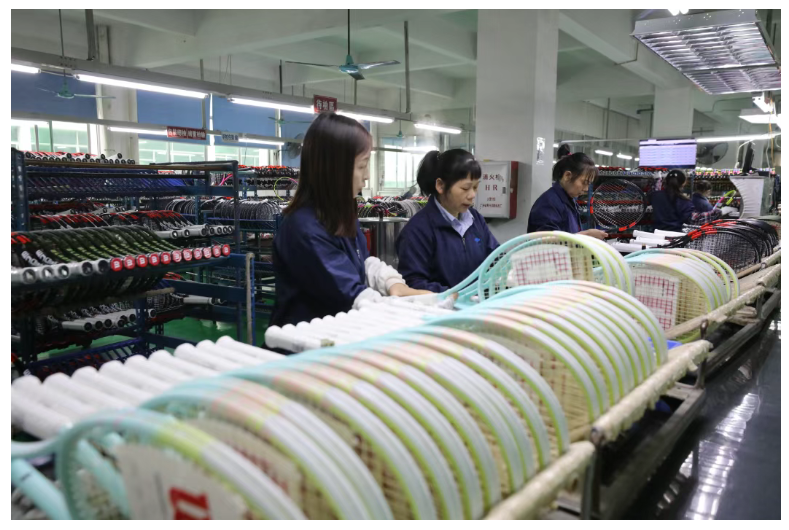 广东海量创新科技有限公司(以下简称“海量科技”)是一家位于河源国家高新区的体育用品制造企业,专业生产制造羽毛球拍、网球拍、匹克球拍等,产品主要销往欧美地区。2025年,该公司球拍销售实现了大幅增长,全年产值9000万元左右,相较于2024年增长28%。