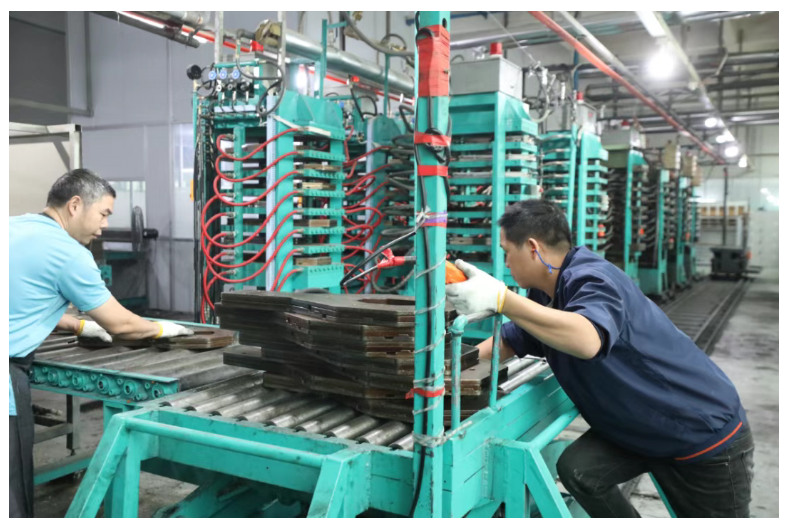 记者在广东海量球拍生产车间看到,原材料通过机械化设备热压成球拍初胚,无人搬运车会将处理好的初胚按照既定的路线送去另外的车间进行喷砂,结束后再自动送到另一车间进行打眼。“这个设备是公司根据需求自主研发的设备,在后面的工序中,它还负责搬运。”魏旭军说,每个球拍都要经过定型、打眼、抛光、穿线等精密工序,才能送到客户手中。